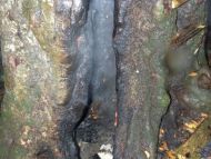 Nach Ablöschen der offensichtlichen Flammen mussten die Glutnester tief im Baum