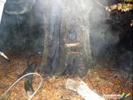 Ein Baum, innen hohl, Durchmesser ca. 1,5 m brannte im kompletten Hohlraum vom