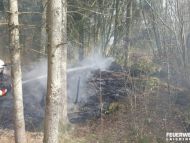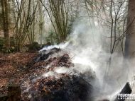 Es brannte ein Laub/ Gestrüpphaufen in einem bewaldeten Gebiet.