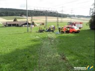Aufnehmen auslaufender Betriebsstoffe und Bergung des Traktors.