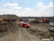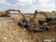 Bis zum Eintreffen der Rettungskräfte war die Baumaschine bereits von den Kollegen des verunglückten mit Baggern und Radladern gesichert.