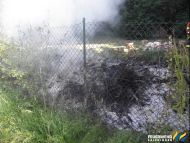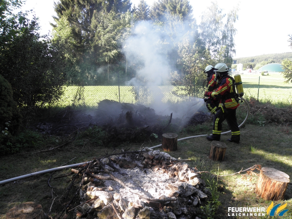 Brennenden Reisighaufen mit einem C Rohr abgelöscht