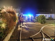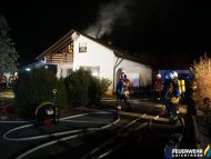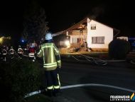 Offene, ca. 3 Meter hohe Flammen aus Dachfenster, keine Personen in Gebäude, zwei Personen vom Rettungsdienst betreut. Als Erstmaßnahmen wurden die Flammen von außen mit zwei C-Rohren bekämpft. Kurze Zeit später begaben sich drei Trupps unter Atemschutz zur Brandbekämpfung mit 3 C-Rohren in den massiven Innenangriff um sehr erfolgreich eine weitere Brandausbreitung auf die Dachhaut und weitere Räume zu verhindern. Danach konnte die Dachhaut von außen geöffnet, weitere Glutnester mit Hilfe der Wärmebildkamera ausfindig gemacht und abgelöscht werden. Ebenso wurde in den zwei betroffenen Räumen die Isolierung entfernt und alle Räume mit Wärmebildkameras kontrolliert.