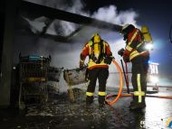 Es brannten Einkaufswägen sowie der dazugehörige Unterstand eines Supermarkts auf einer Freifläche.