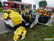 Nach Rucksprache mit dem Notarzt wurde an einem PKW zur Schonenden Rettung das Dach des Fahrzeugs abgenommen und die verletzte Achsengerecht aus dem Fahrzeug gerettet.