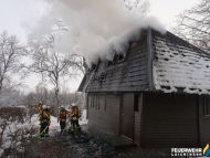 Schnee und Eis sorgten neben dem Feuer durch einfrieren und glatte Stelle zusätzlich für Gefahren an der Einsatzstelle.