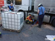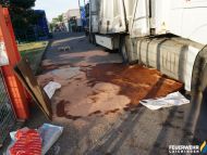 Durch ein Wendemanöver wurde der LKW Tank aufgerissen.