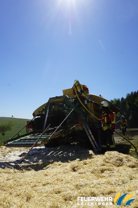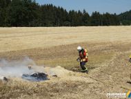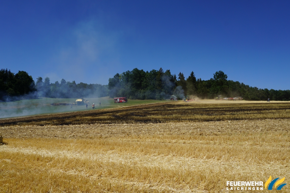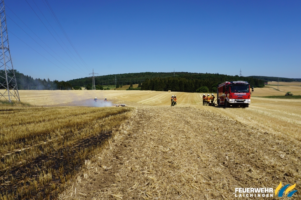 Beim Eintreffen brannte eine Ballenpresse sowie Feldstücke auf einer Länge von ca. 200 Metern.