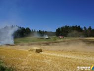 Nachdem die Brände gelöscht waren wurde das Feld durch den Landwirt umgepflügt und die Presse auf befestigten Untergrund geschleppt.