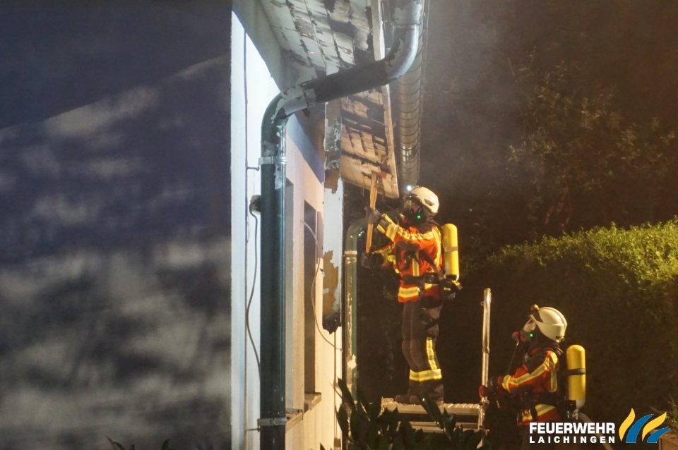 Brandwache und Auftrennen der Fassadendämmung wurde durch die Feuerwehr Merklingen übernommen.