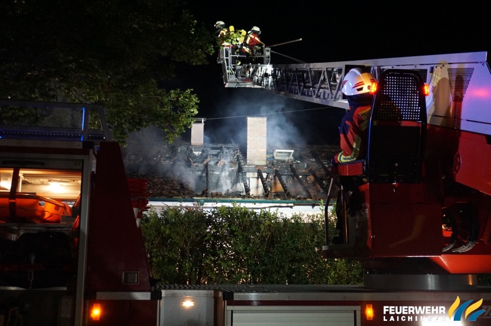 Die Feuerwehr Laichingen unterstütze mit der Drehleiter beim Ablöschen des Brandes.