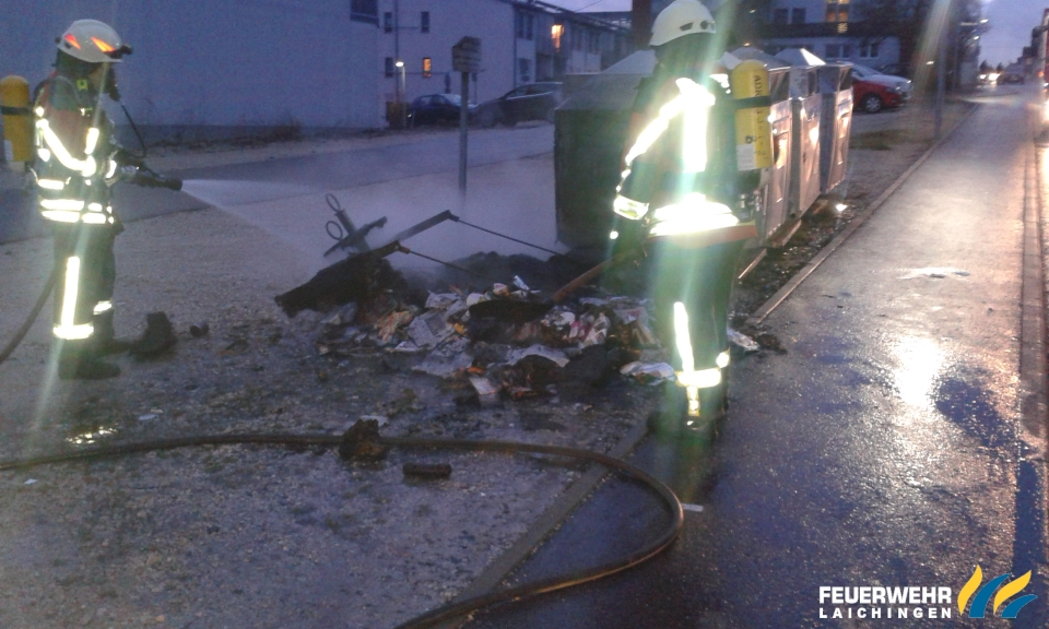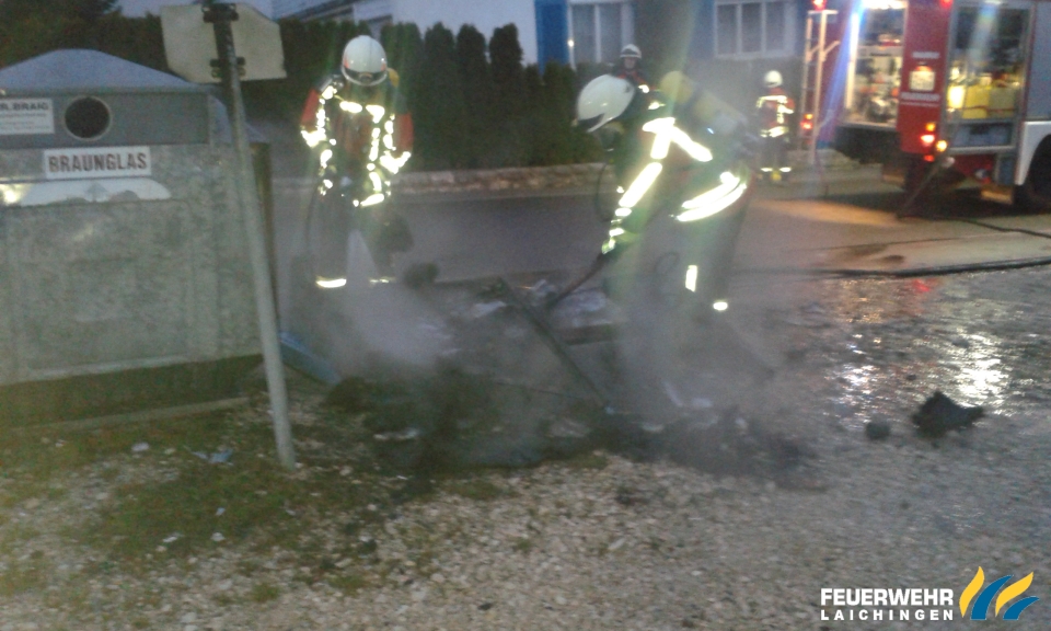 Papiercontainer stand beim Eintreffen bereits im Vollbrand.