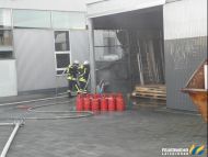 Vor Ort Stelle sich die Lage wie folgt dar: Es brannte ein Altholzcontainer in direkter Nähe einer Produktionshalle. Die Fassade der Halle war durch Hitze bereits in Mitleidenschaft gezogen worden.
