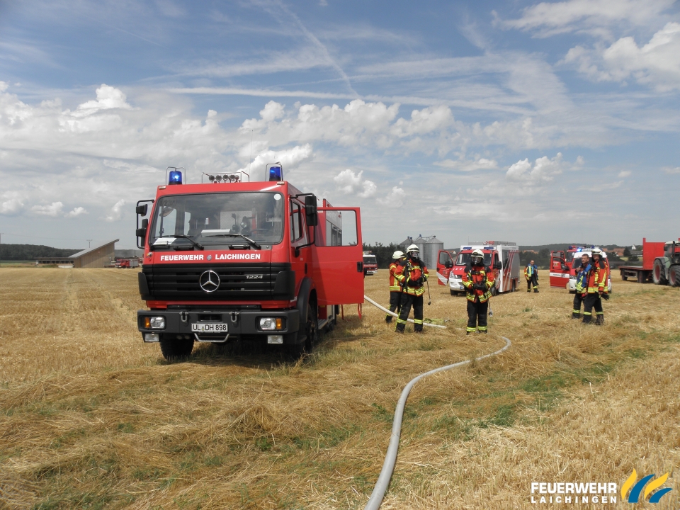 Aufgrund der Gefahr eines Flächenbrandes sowie der nicht vorhandenen Wasserversorgung auf einem freien Feld löste der Leitstellendisponent einen Alarm für alle Abteilungen aus, um genügen Wasserführende Fahrzeuge vor Ort zu haben.