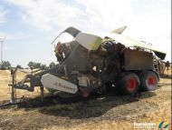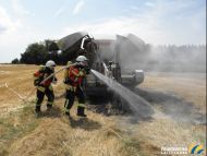 Brand einer Ballenpresse auf Stoppelfeld