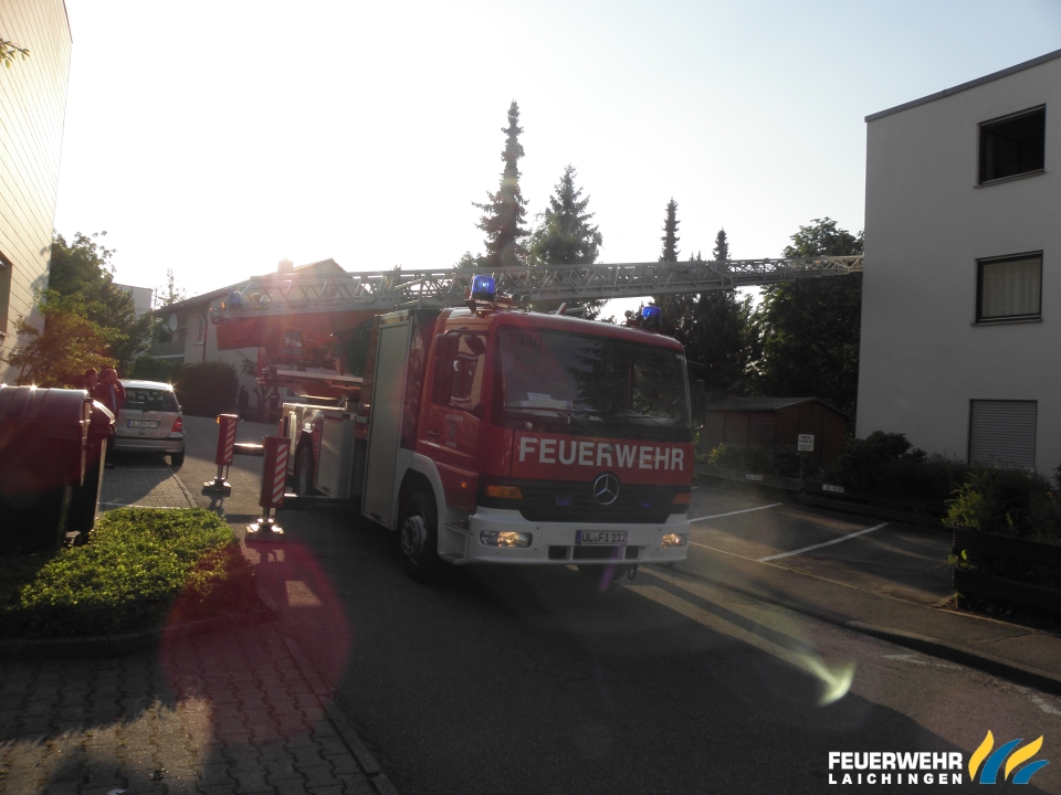 Da das Treppenhaus zu eng war um den Patienten schonende aus dem 3 OG zu transportieren forderte der Notarzt die Drehleiter an.