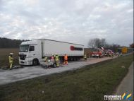 Durch einen auf der Straße liegenden Mantel eines LKW Reifen wurde die Kraftstoffleitung des Fahrzeugs durchtrennt. Hierdurch kam es zu einem erheblichen Kraftstoffaustritt auf die Fahrbahn.