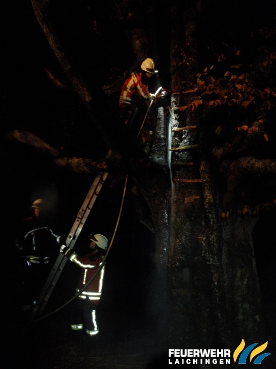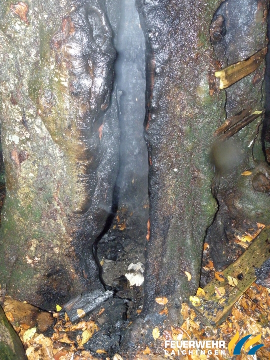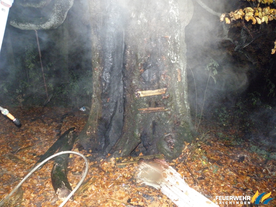 Nach Ablöschen der offensichtlichen Flammen mussten die Glutnester tief im Baum