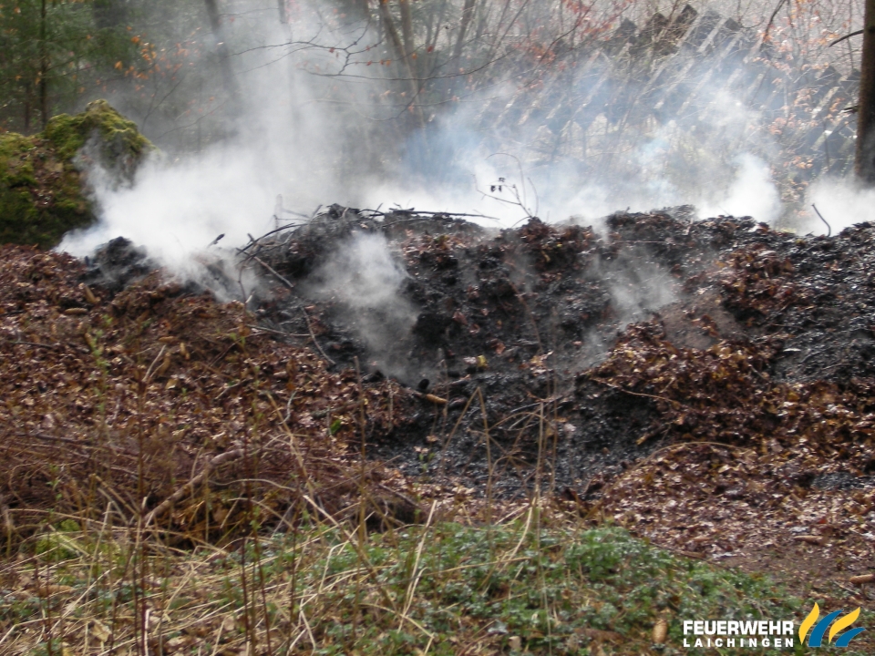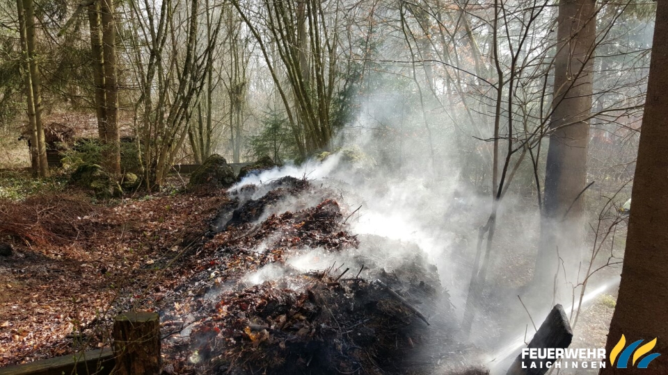 Es brannte ein Laub/ Gestrüpphaufen in einem bewaldeten Gebiet.
