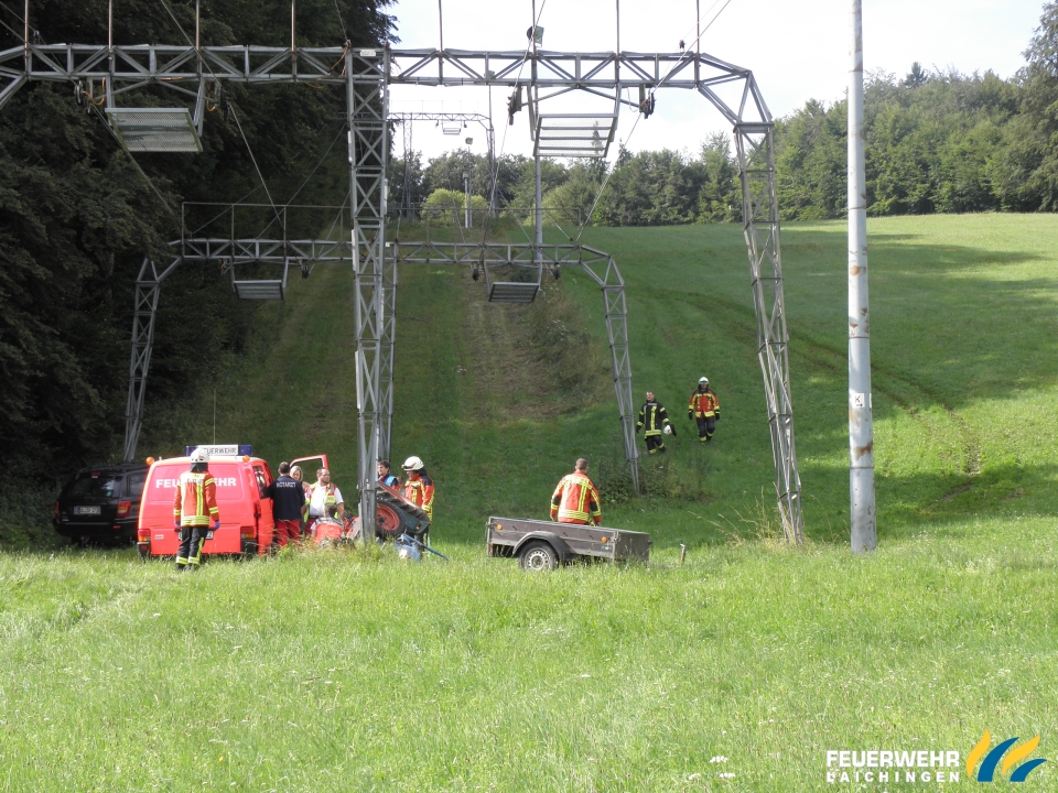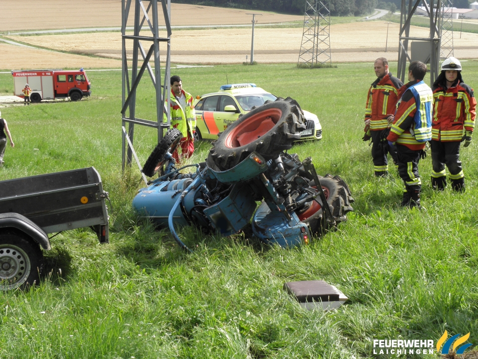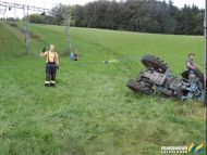 Aufnehmen auslaufender Betriebsstoffe und Bergung des Traktors.