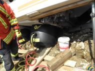 Nach Rücksprache mit der vor Ort zuständigen Feuerwehr Merklingen übernahmen die Kräfte aus Laichingen die weitere Absicherung der Maschine mit Stempeln, Rüstholz und Hebekissen.