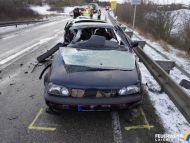 Nach gemeinsamer Lagesichtung mit beiden Notärzten wurde eine schnelle Rettung der Person beschlossen welche sich aufgrund der Nähe zur Leitplanke und der starken Deformation des Fahrzeugs als äußerst komplex erwies.