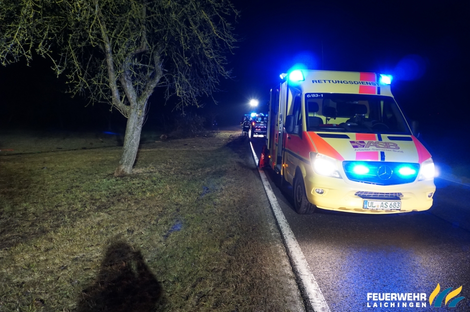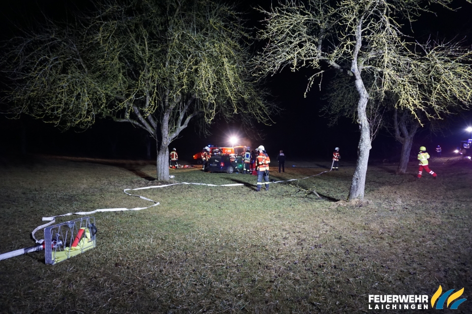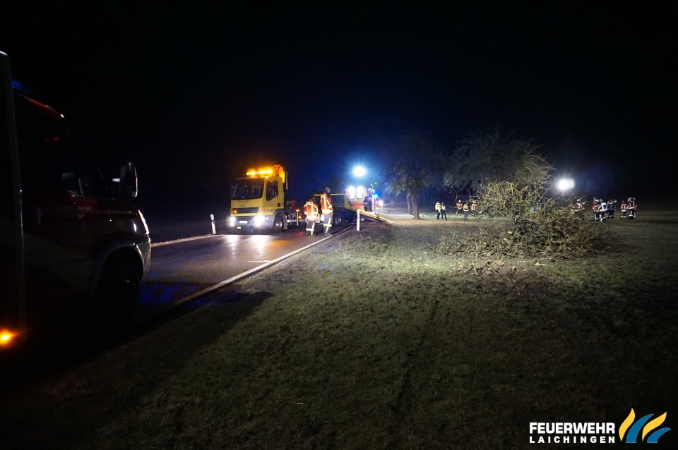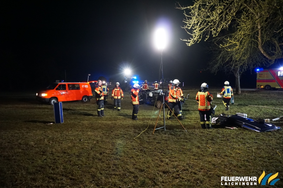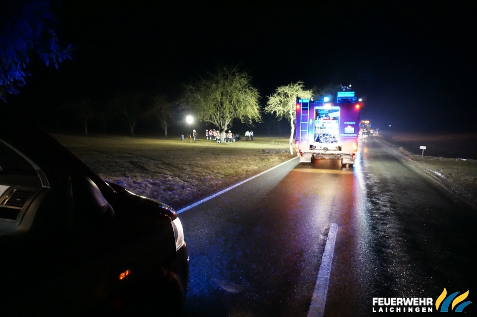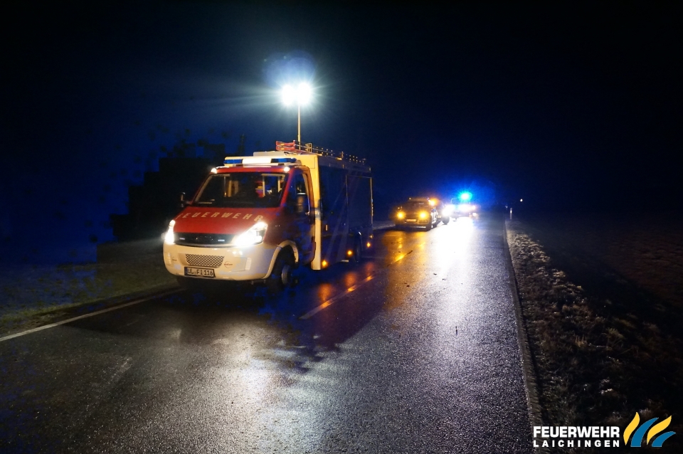 Absichern und Ausleuchten der Einsatzstelle am Ortseingang von Suppingen.