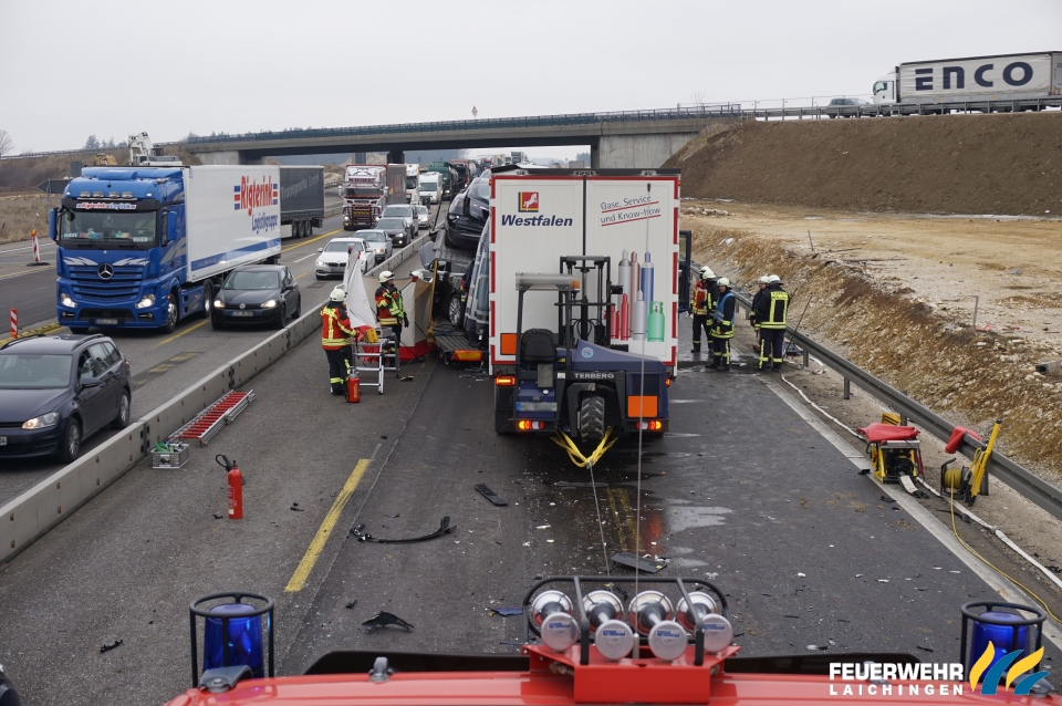 Die Feuerwehr Merklingen übernahm parallel dazu den Brandschutz und sicherte bis zum Eintreffen der Straßenmeisterei die Unfallstelle ab.