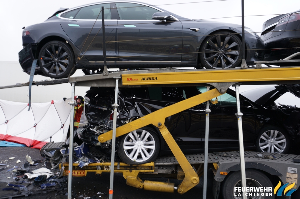 - Gemeinsame Bergung des verunglückten Fahrers aus der zerstörten Kabine.