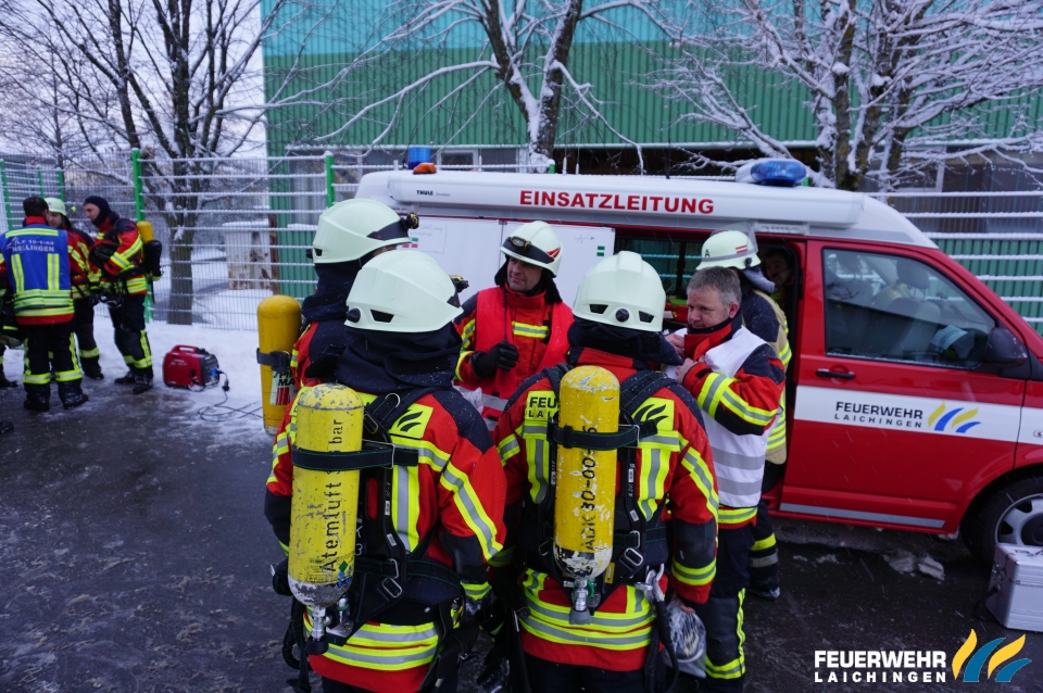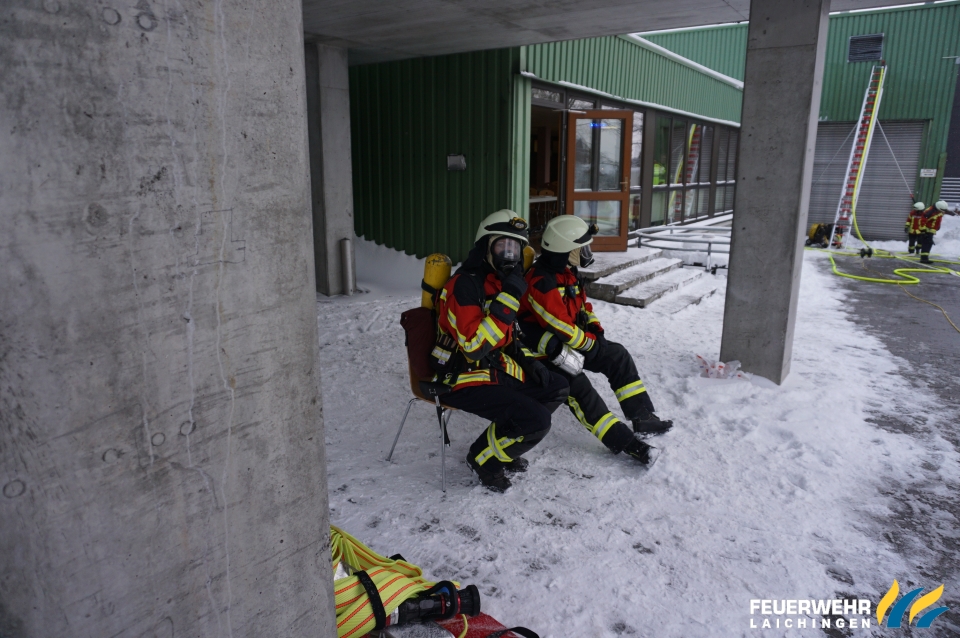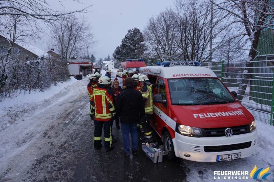 Unterstützung der Feuerwehr Westerheim beim Durchsuchen und Belüften der Hallen.
