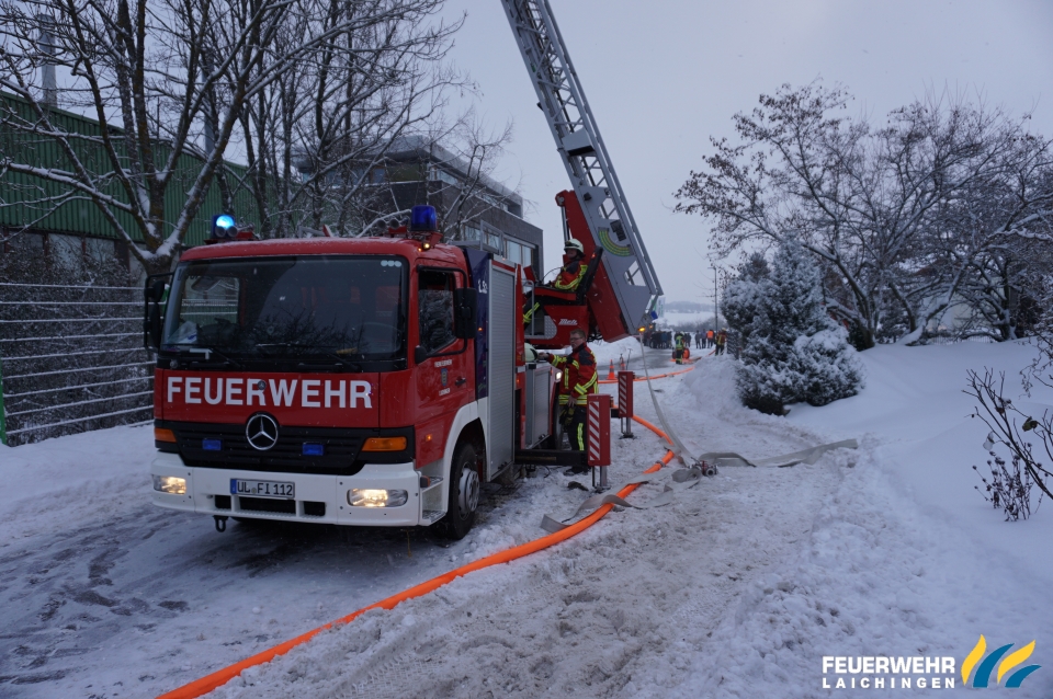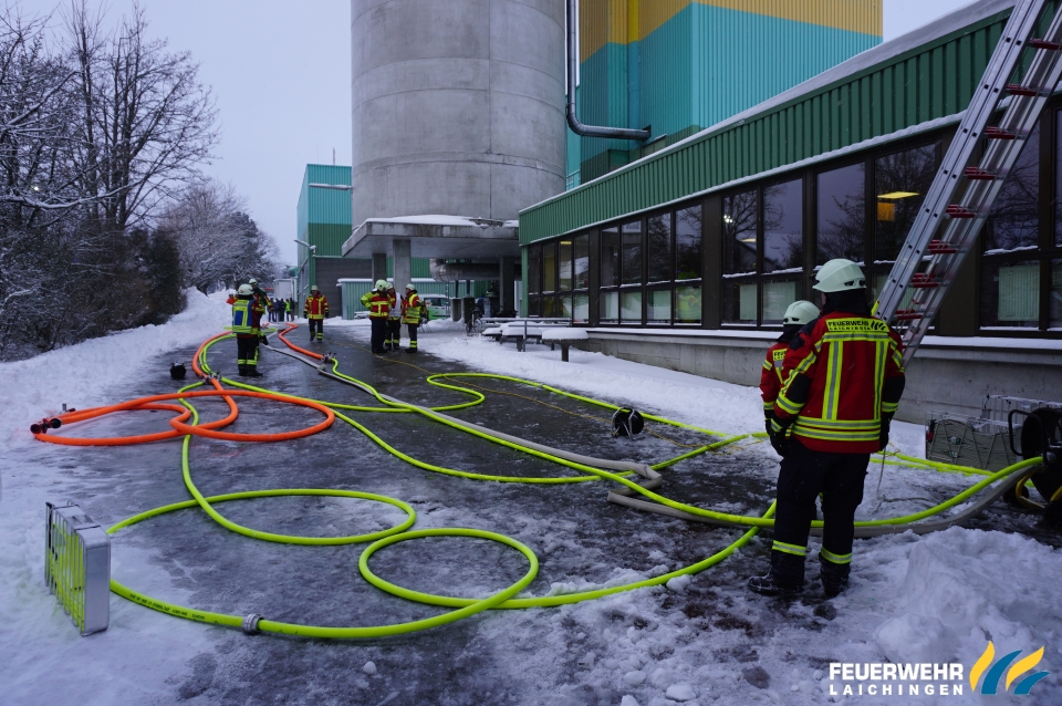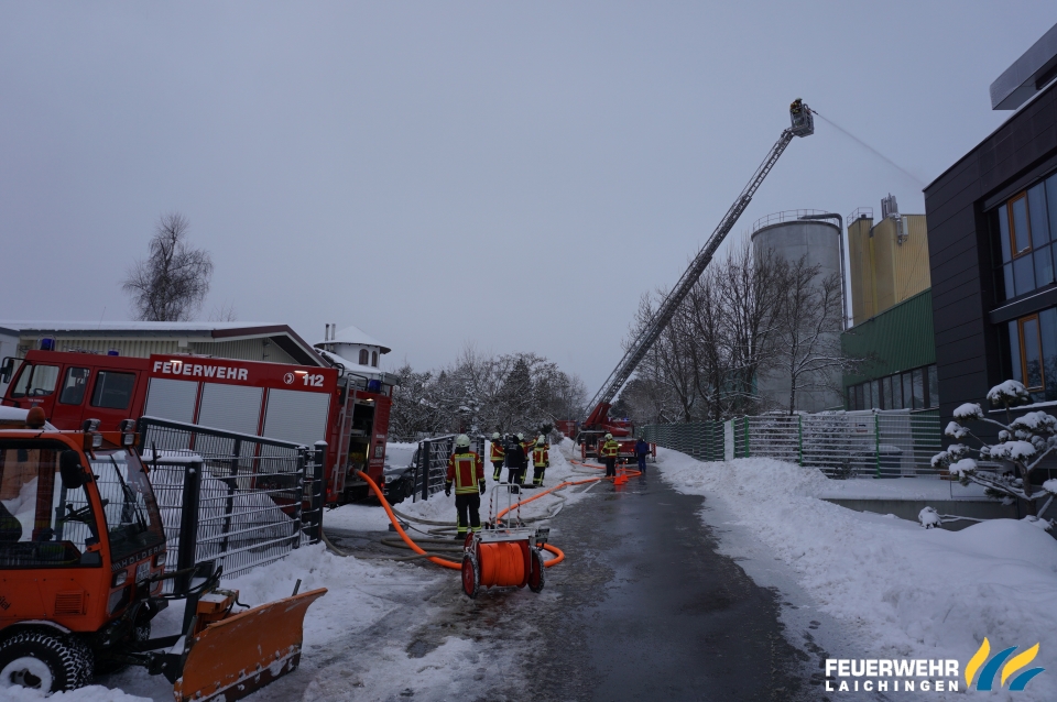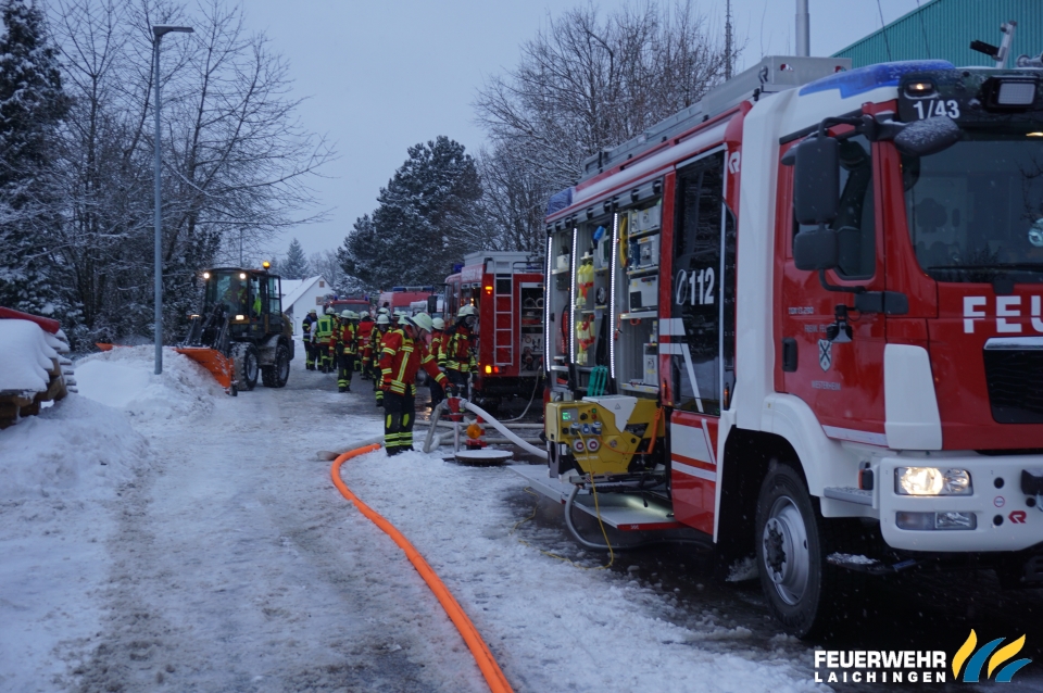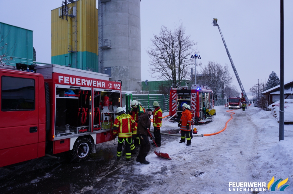 Überlandhilfe bei Brand in einem holzverarbeitenden Betrieb in Westerheim