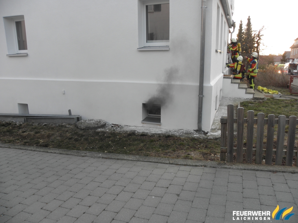 Anschließen ging der Trupp zur Brandbekämpfung in den Keller vor wo Rauch aus den Fenster zu sehen war.
