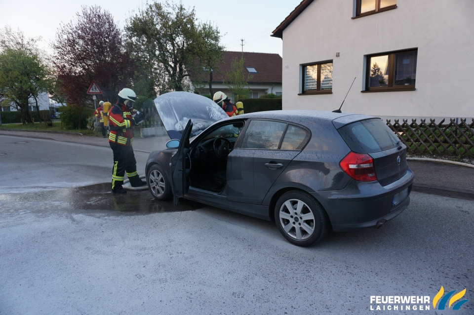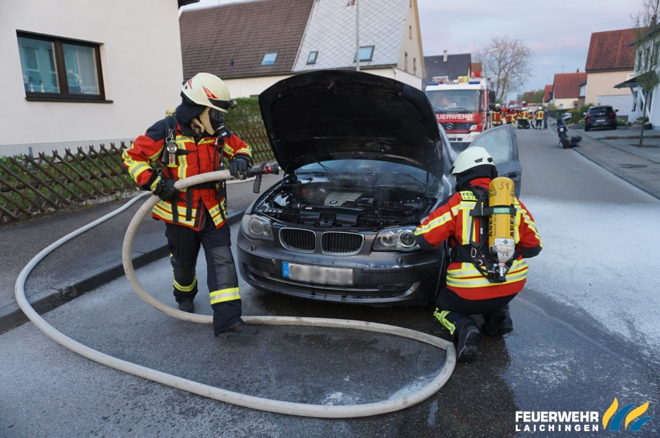 PKW unter Atemschutz mit einem C Rohr abgelöscht.
