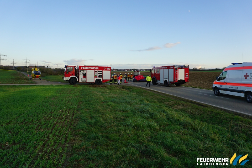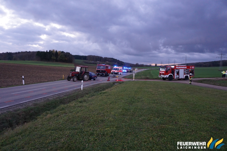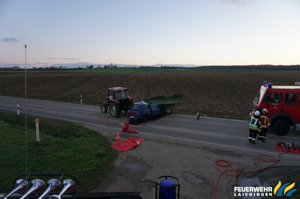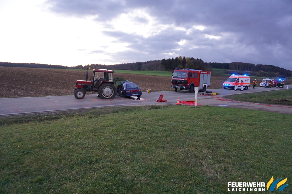 Schwerer Verkehrsunfall PKW gegen Traktor