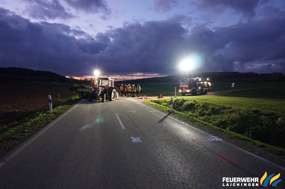 | Einsatzart | Verkehrsunfall PKW gegen Traktoranhänger |