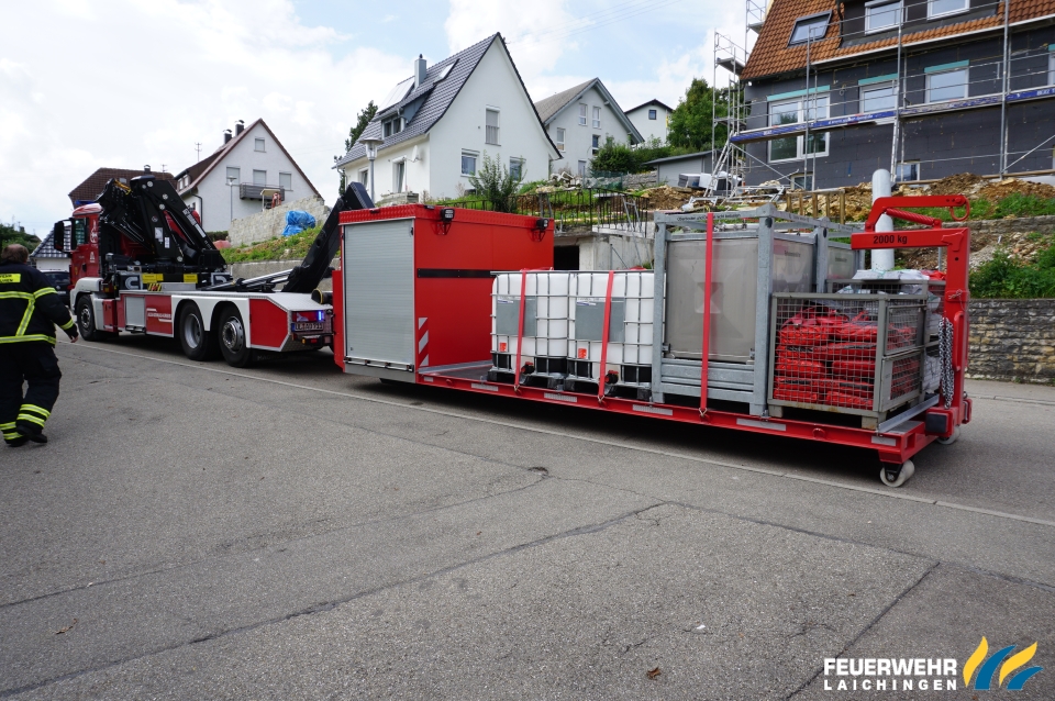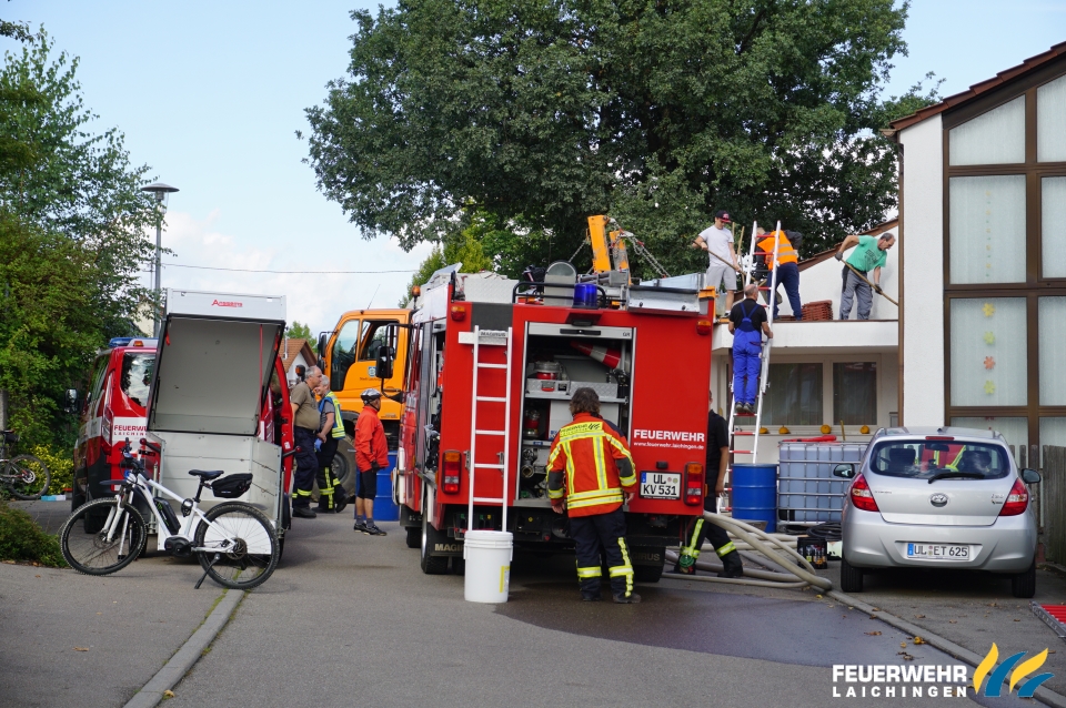 Um ein Nachlaufen zu verhindern mussten 1000 Liter Heizöl aus dem Tank in einen Behälter der FW Blaubeuren umgepumpt werden.