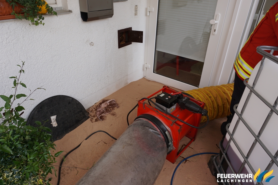 Um den unverkennbaren Heizölgeruch aus dem Gebäude zu bekommen wurde das Gebäude fast 2 Stunden überdruckbelüftet und die Luft im Keller mit einem Be-und Entlüftungsgerät abgesaugt.