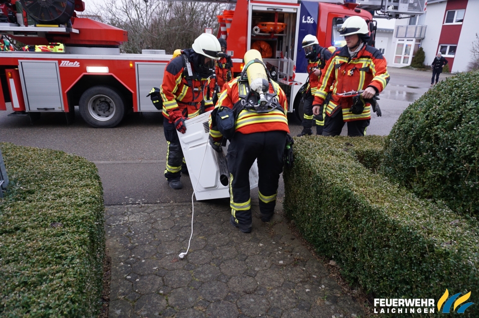 Die Feuerwehr brachte das Gerät ins Freie, kontrollierte den Raum mittels Wärmebildkamera und belüftete das Gebäude.