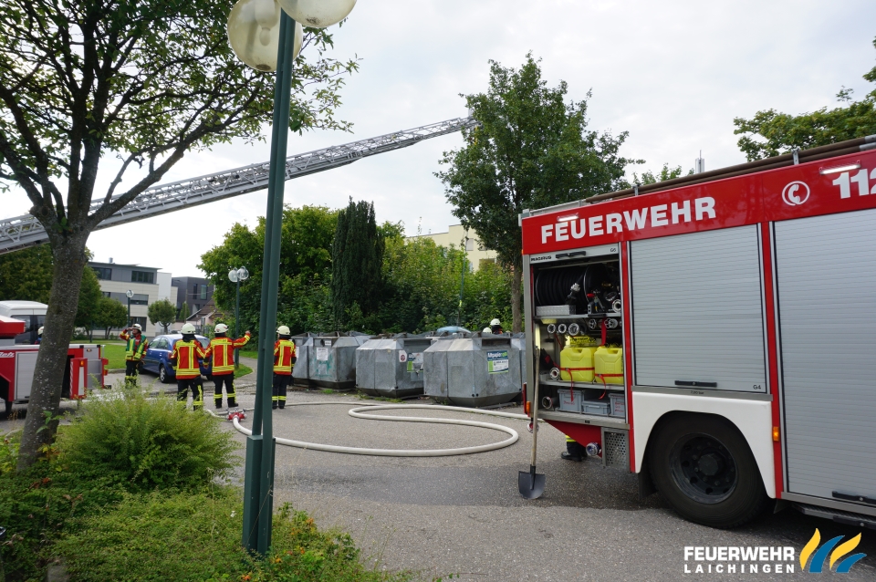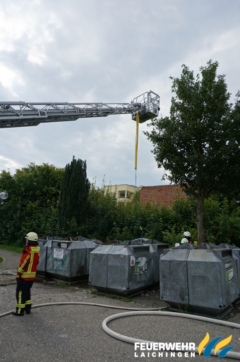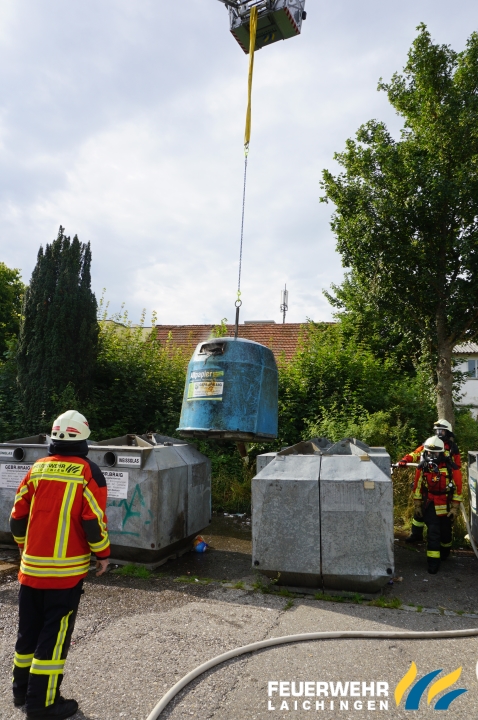 Container mit Hilfe der Drehleiter entleert und gekühlt.