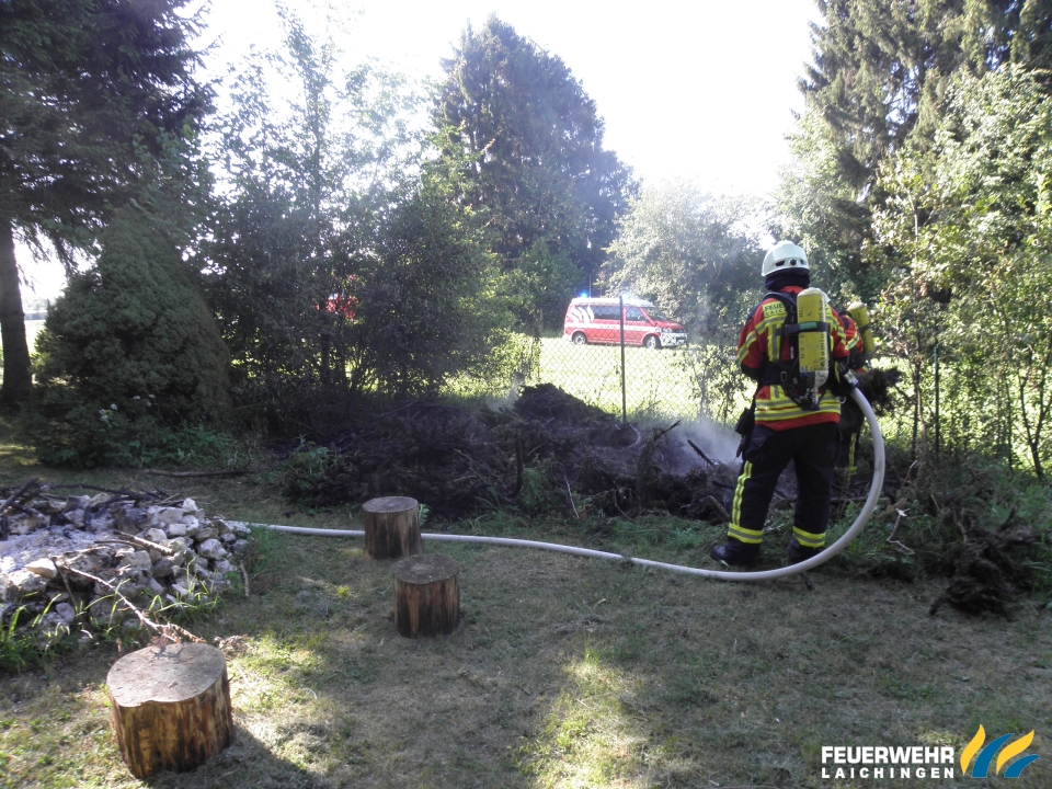 Brennenden Reisighaufen mit einem C Rohr abgelöscht