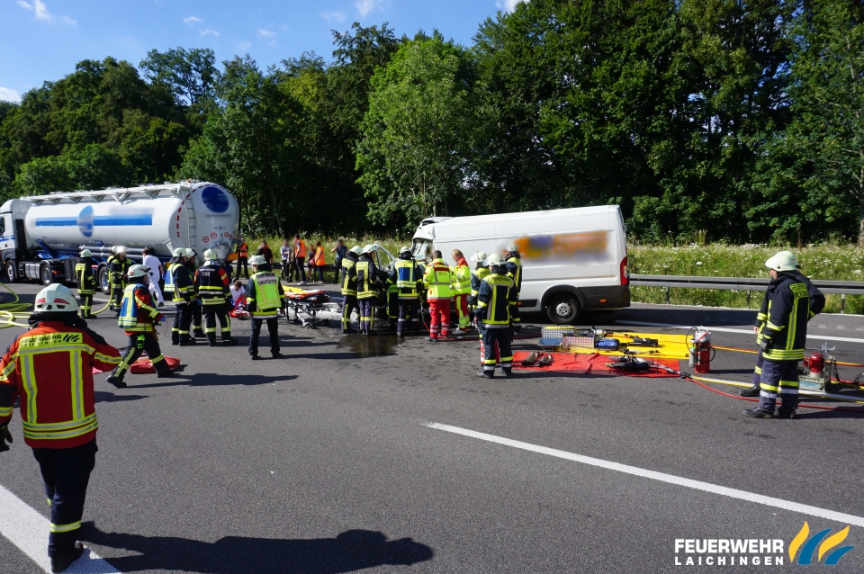 Verkehrsunfall BAB8 eine Person eingeklemmt