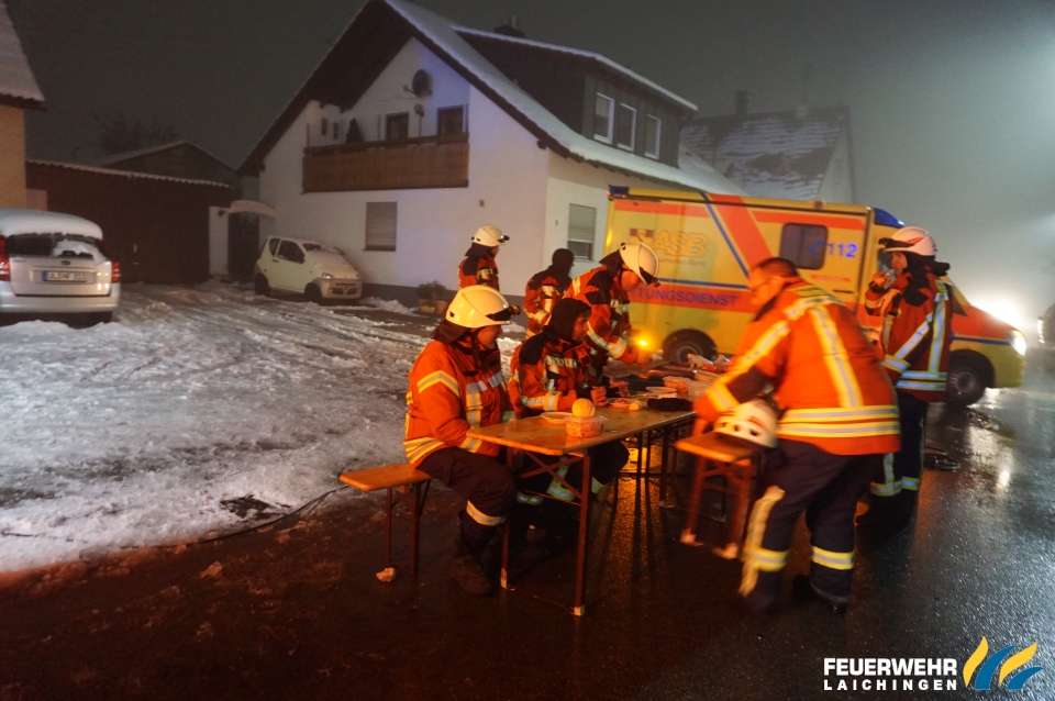 Um wieder zu Kräften zu kommen wurden die Einsatzkräfte vom Jugendclub Knast in Feldstetten die an diesem Tag ihre Wurstsalat Aktion hatten mit Wurstsalat und Wecken versorgt. Vielen Dank dafür.