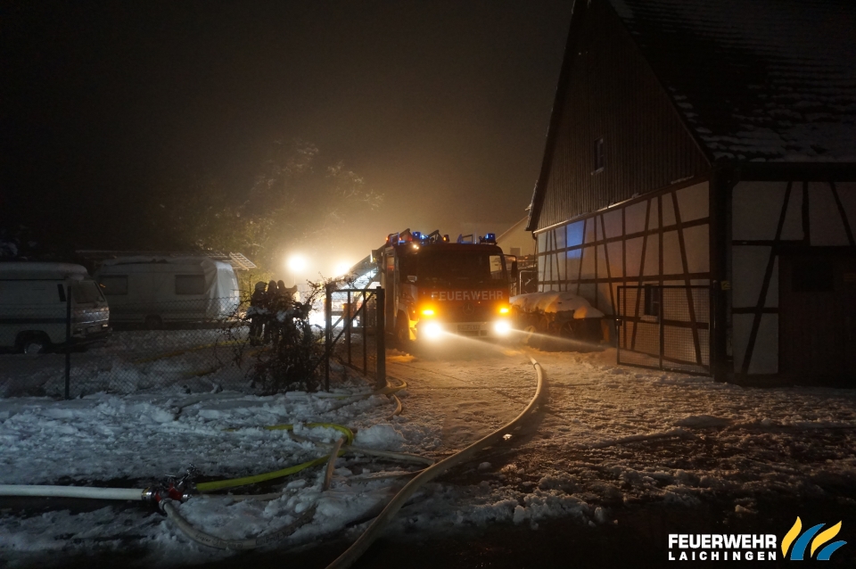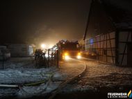 Da die Brandausbreitung bereits enorm fortgeschritten war, und auch Wohngebäude in Gefahr waren wurde kurze Zeit später gemeinsam entschieden auf B3 Gebäude zu erhöhen und zusätzlich den Gerätewagen Atemschutz zur Einsatzstelle zu beordern.