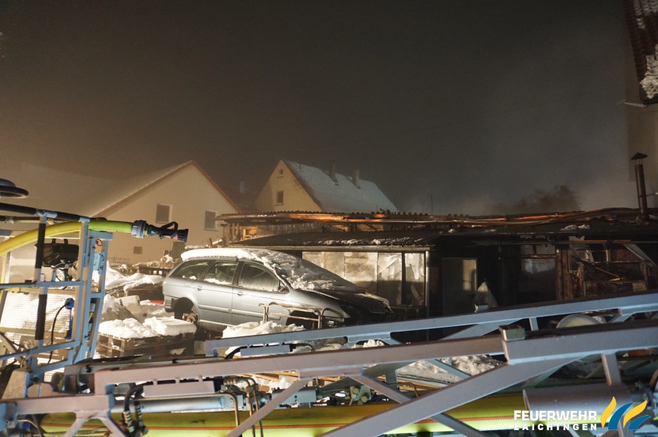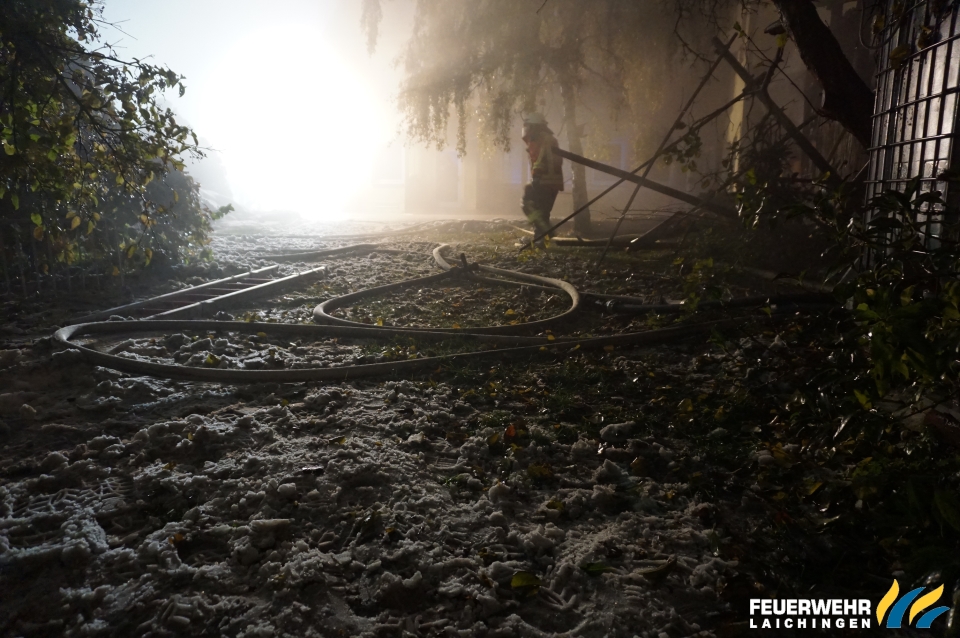 Durch das schnelle und richtige Handeln konnten alle Wohngebäude gehalten und die Bewohner in ihre Häuser zurückkehren. Das Brandobjekt selbst wurde komplett zerstört.