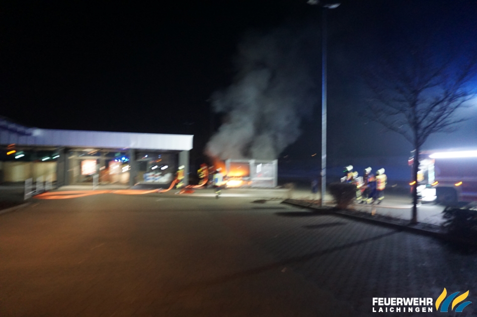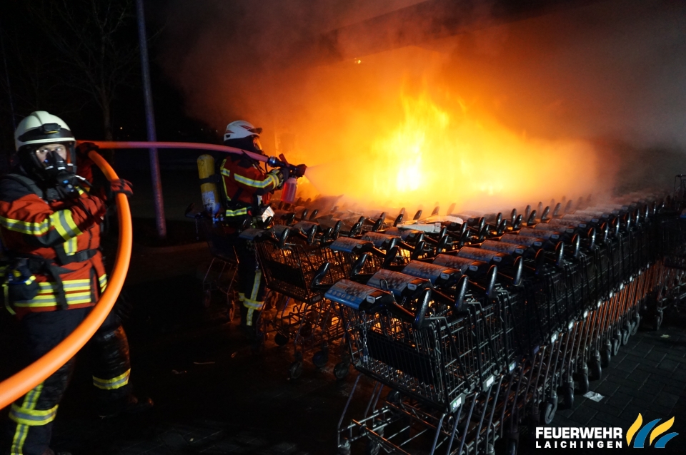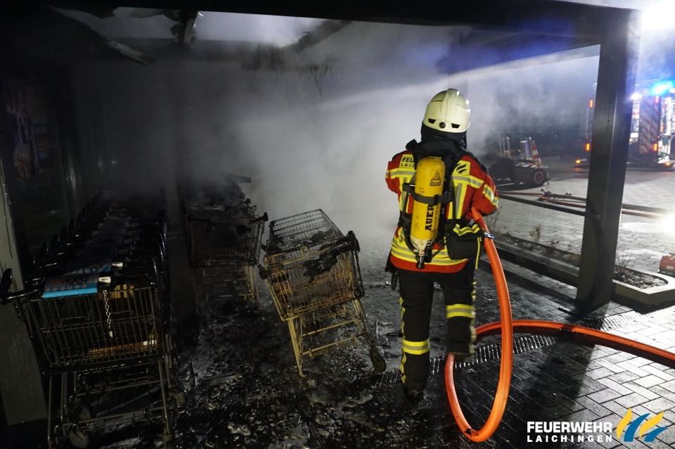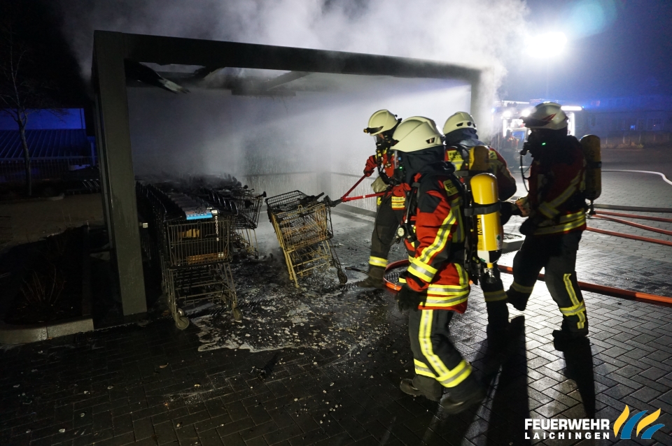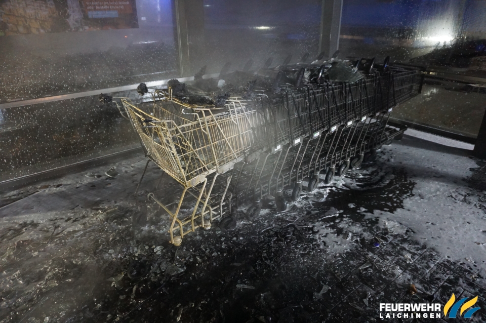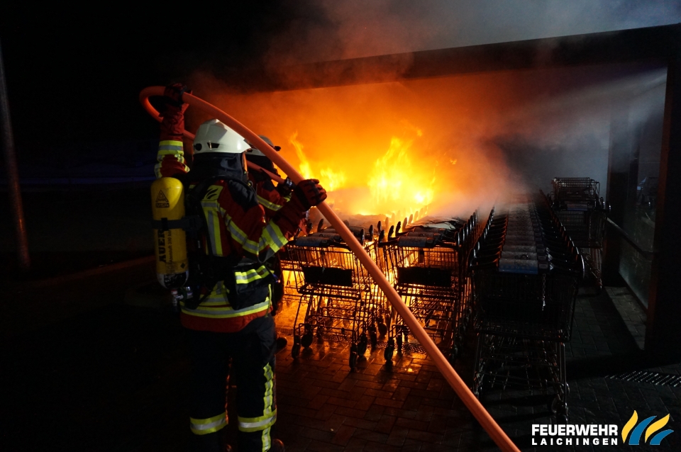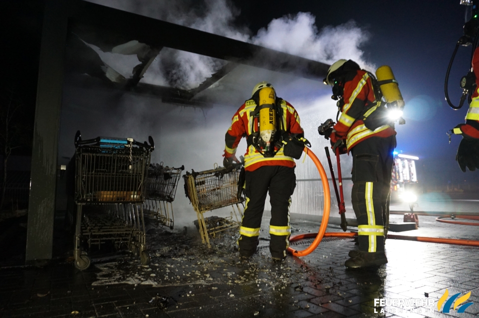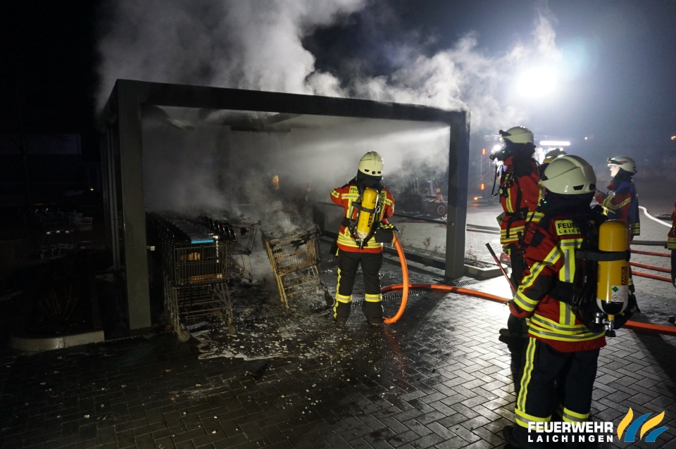 Es brannten Einkaufswägen sowie der dazugehörige Unterstand eines Supermarkts auf einer Freifläche.
