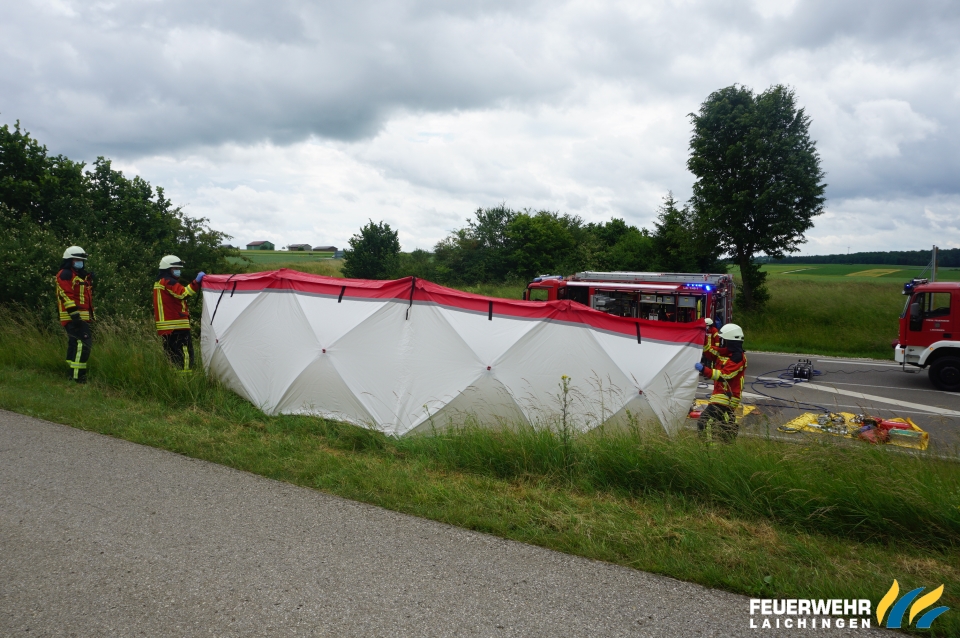 Zum nahgelegen Feldweg musst ein Sichtschutz errichtet werden da leider von vorbeifahrenden PKW während der Personenrettung gefilmt wurde.