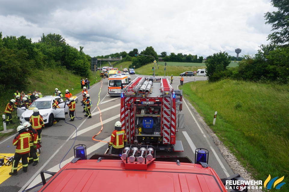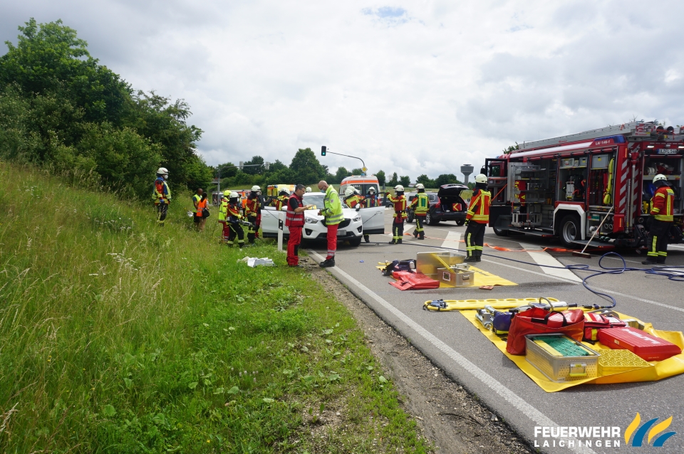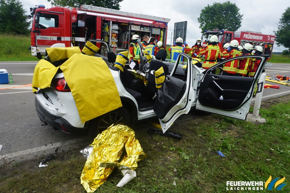 Nach Rucksprache mit dem Notarzt wurde an einem PKW zur Schonenden Rettung das Dach des Fahrzeugs abgenommen und die verletzte Achsengerecht aus dem Fahrzeug gerettet.