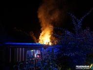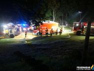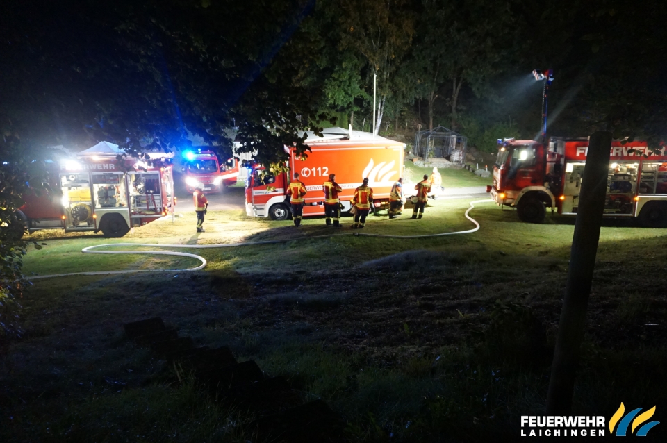 Weitere Einsatzkräfte bauten 2 Wasserversorgungen vom Schwimmbad zur Brandstelle auf da das Wasser in den Fahrzeugtanks zur Brandbekämpfung nicht ausreichte.