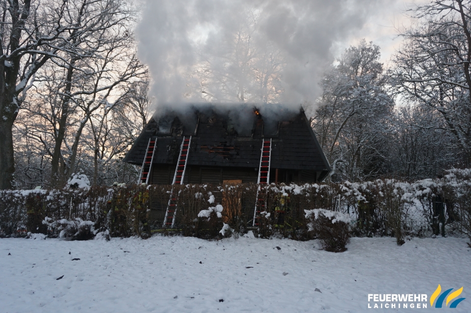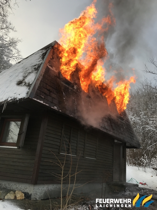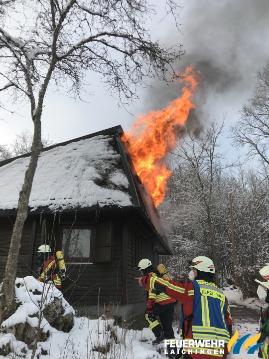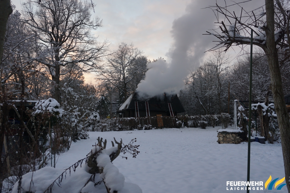 Es Brannte der Dachstuhl eines vollausgebauten Ferienhauses in kompletter Ausdehnung.