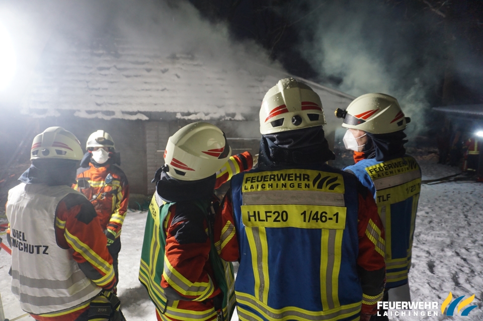 Die Aufbauzeit wurde mittels Pendelverkehr der FW Berghülen und Laichingen überbrückt um den bereits weit fortgeschrittenen Brand schnell löschen zu können.